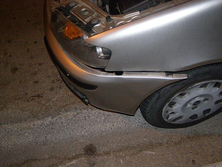 הפנס הימיני לא נשבר לגמרי, כלומר, הפנס עצמו שלם - הפלסטיקים שעליהם יושבים הברגים שמחזיקים את הפנס נשברו. (אפילו כל הנורות בפנס עובדות כרגיל).
