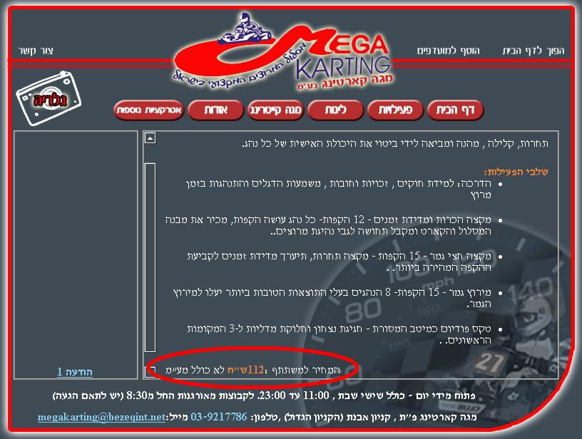 כי לפני יומיים הייתי בקניון וראיתי שהקרטינג פעיל ואנשים נוסעים בכיף .מצאתי את האתר שלהם, צירפתי תמונה. זה יוצא 130 ש"ח כולל מע"מ לאדם. נערך לאחרונה על ידי Lexxxa : 24-03-10 ב 05:22. |