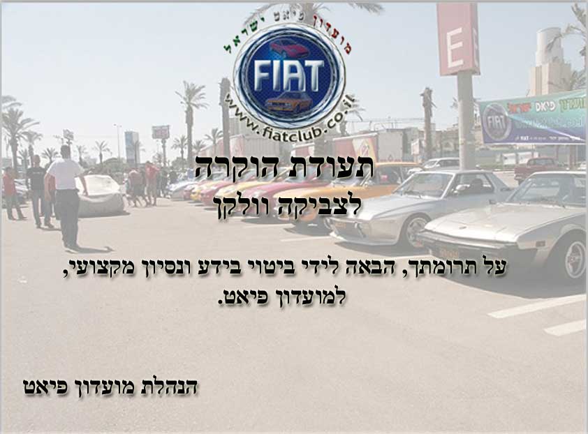 חזור   מועדון פיאט ישראל > פורום מועדון פיאט ישראל > פעילויות המועדון
