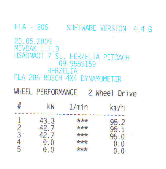 2. לגבי ההספק של המנוע, לא קצת חלש? שאלתי את הבוחן והוא אמר שזו תוצאה טובה מאוד יחסית למהירות בעת הבדיקה, האם כך הדבר? ( 95.2 קמ"ש יצא 43.4 KW שזה 58.07 כ"ס, הייתכן? ).