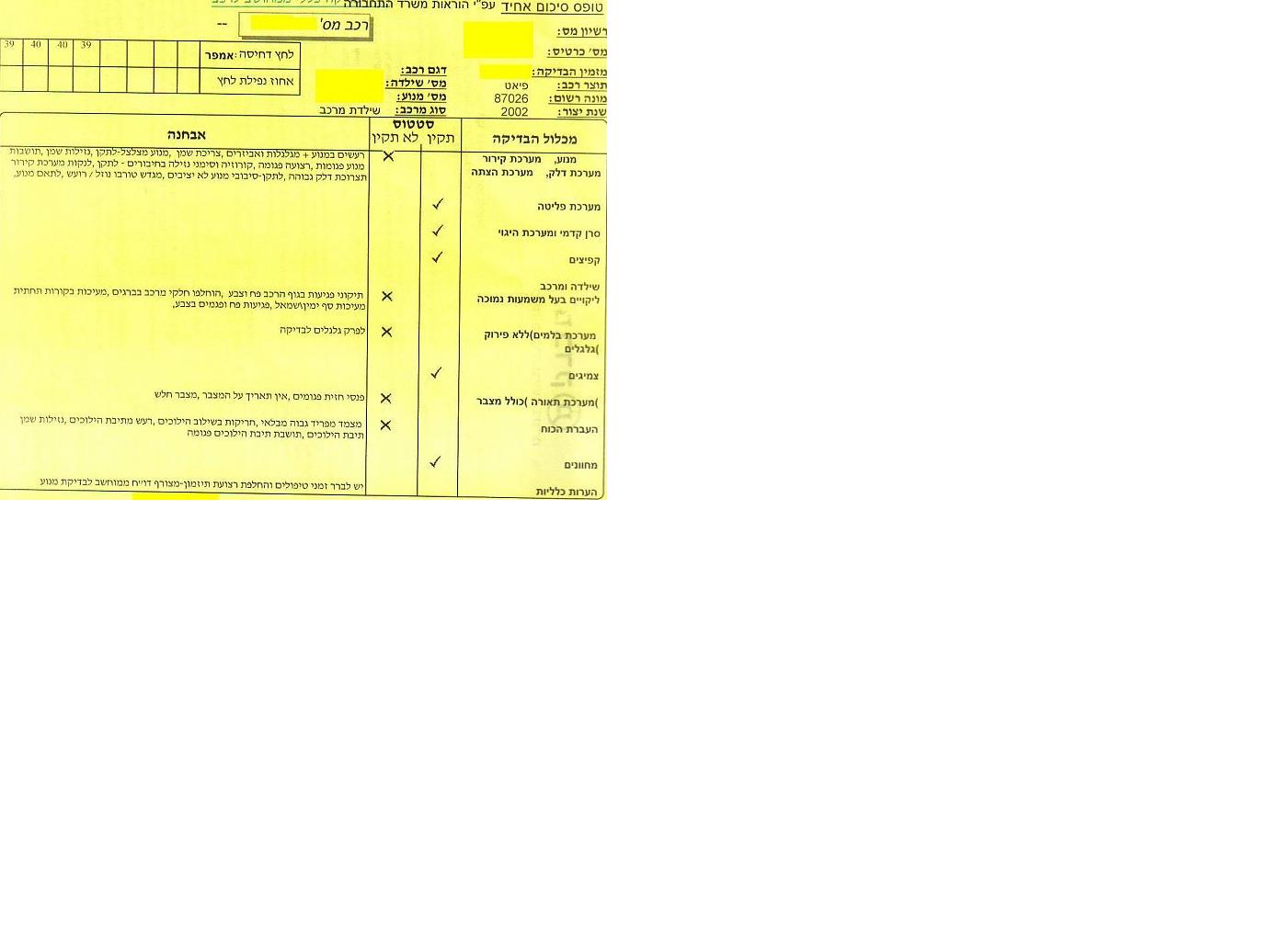ניתוח טופס בדיקת רכב- פונטו HGT 2002