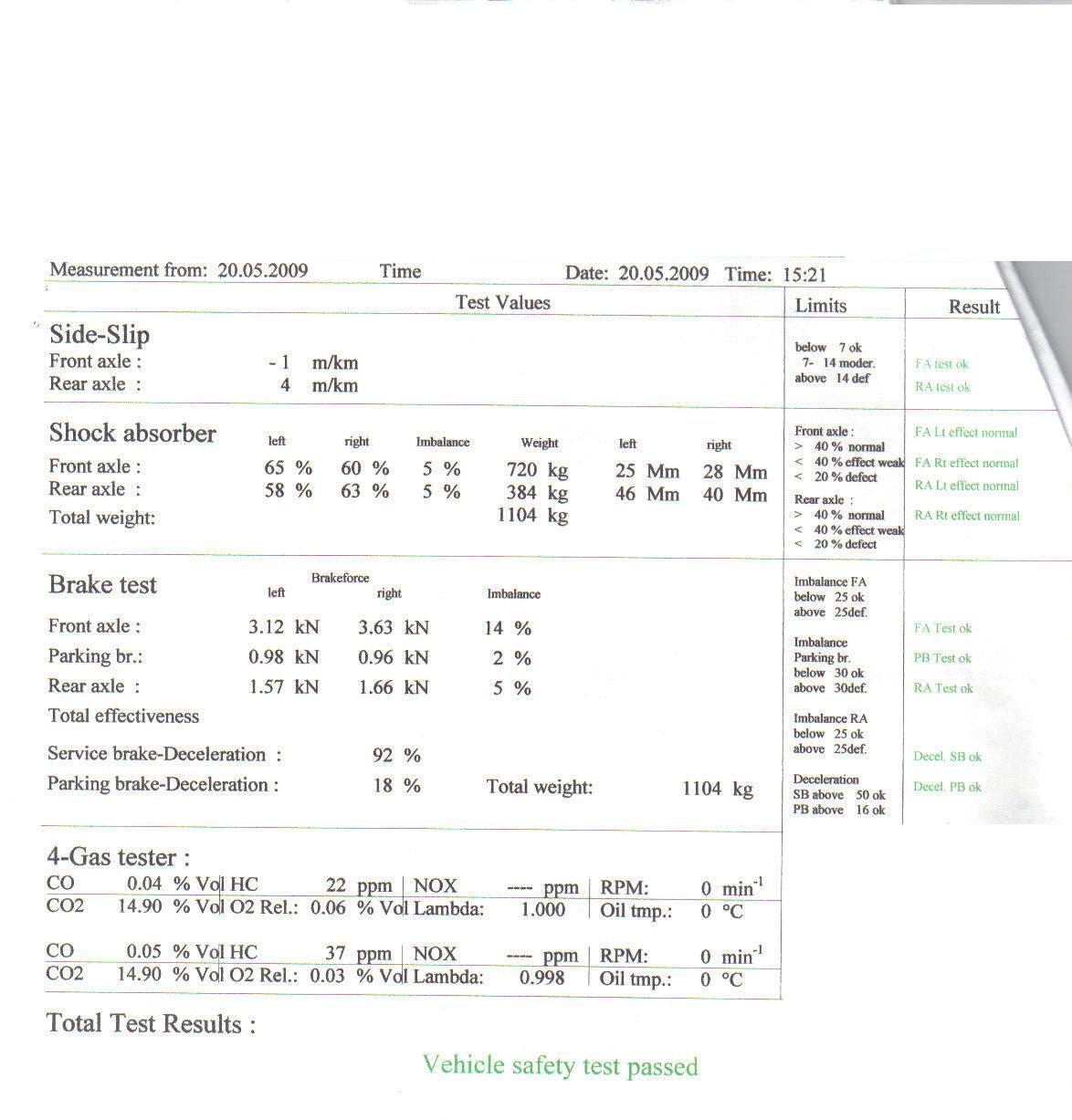 ביצעתי היום בדיקה לפיאט פונטו HGT שנת 2002, התוצאות מצורפות כקובץ.