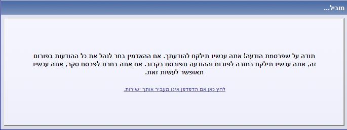 מופיעה לי הודעה מוזרה כאשר אני מפרסם הודעה/ תגובה חדשה. לאחר היעלמות ההודעה ההודעה שלי מופיעה מיד, אבל מה זה אומר?