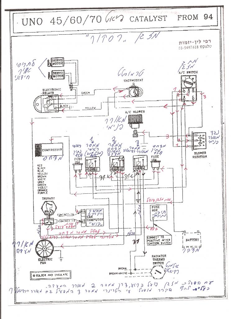 שרטוט חשמלי של מזגן "רסקור" פיאט אונו