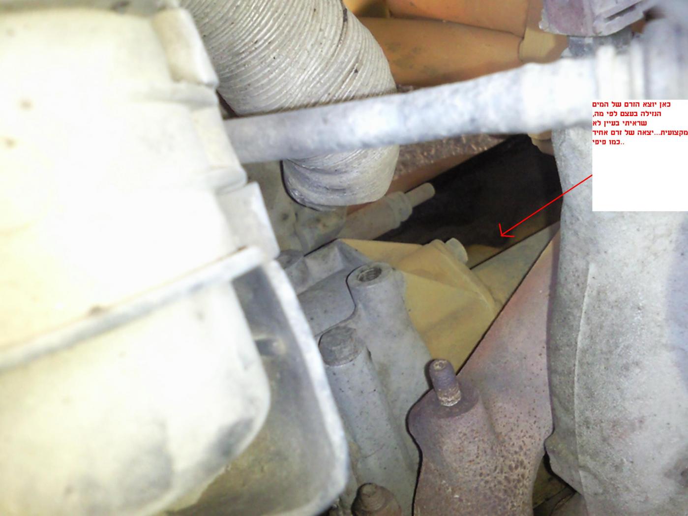 הסתכלתי קצת במנוע לראות מאיפה הנזילה הקשה הזאת אז ראיתי שזה מתחת לקופסא של הפילתר אויר,יש שם כמו ברזל מוברג ומשם יש כמו פרץ של צינור מים קטן או סליחה על הביטוי כמו זרם פיפי כשאני ממלא מים והמפלס יורד במהירות המים בורחים והאוטו מתחמם..