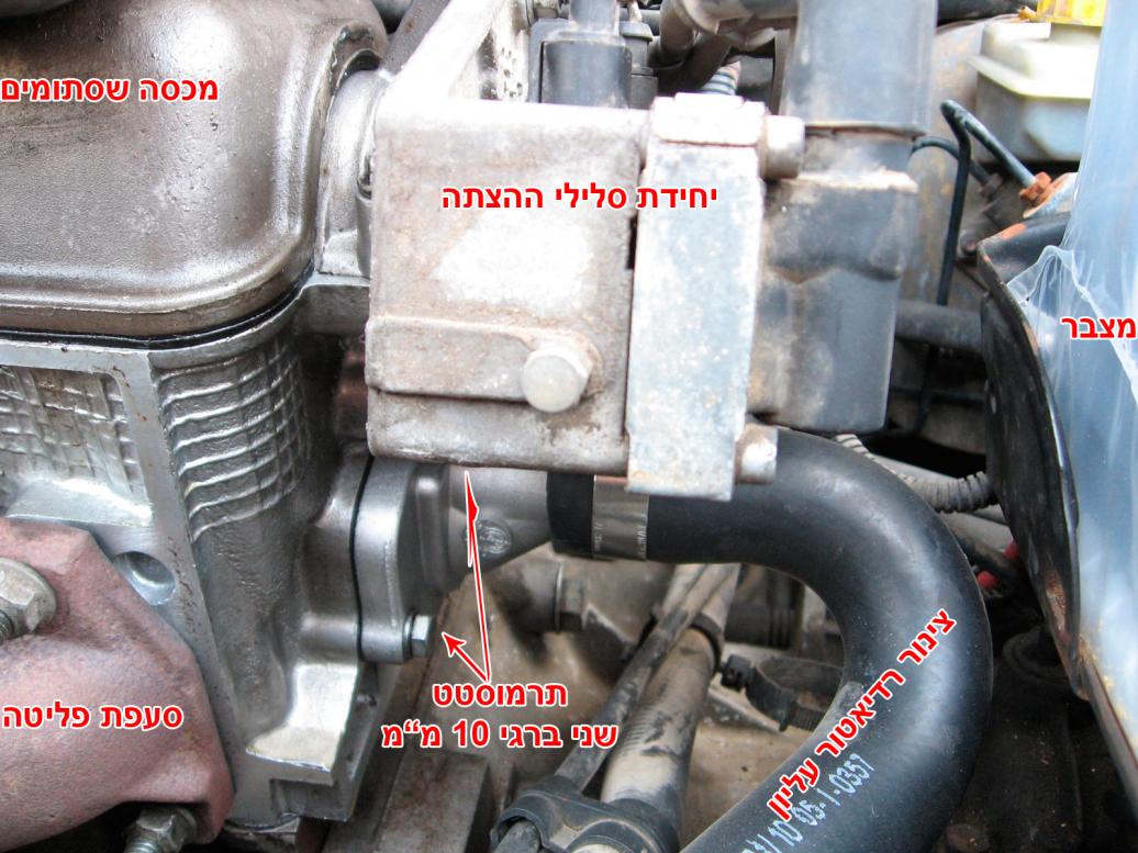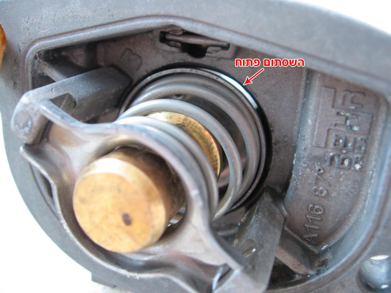 לאחר שהחלפתי ראש מנוע ותרמוסטט בפונטו S60 שלי בפרויקט הקודם, טמפ' המנוע השתנתה מעט, לכן "חפרתי" קצת בנושא, ביצעתי מס' בדיקות לוודא שהכל תקין ורציתי לשתף אתכם, למי שמעוניין או שנמצא בתהליך דומה. פירוק התרמוסטט הישן והרכבת תרמוסטט חדש כשהמנוע כבוי וקר פותחים את פקק מכל העיבוי, פותחים את צינור הרדיאטור התחתון (תפוס עם בנד נרוסטה/מתכת), ומרוקנים את נוזל הקירור למכל ריק. אני החלפתי את צינור הרדיאטור העליון מאחר והיה יבש, רצוי לבדוק את מצב הצינור הישן, אם יבש, סדוק או רך מדי יש להחליף. פירוק התרמוסטט הישן ע"י פתיחת שני ברגי 10מ"מ, התרמוסטט ממוקם בקצה צינור הרדיאטור העליון מתחת ליחידת סלילי ההצתה. הרכבת התרמוסטט החדש כולל אטם חדש (לחזק את הברגים ברגש). לחבר ולחזק את הצינורות, למלא בנוזל קירור, מומלץ "פראפלו" מהול במים מזוקקים יחס של חצי נוזל מרוכז/חצי מים מזוקקים (בשום אופן לא במי ברז! גם אם "תפרנים") וחשוב מאוד לנקז אוויר ממערכת הקירור. לא שמתי לב אם אפשר בטעות להרכיב את התרמוסטט הפוך, אך האינדיקציה להרכבה נכונה היא כשהחריר נמצא בחלק העליון של גוף התרמוסטט (ראה תמונה "רכיבי התרמוסטט"). מידע נוסף לגבי התרמוסטט וטמפרטורת נוזל הקירור במערכת תפקיד התרמוסטט במנוע להביא את טמפרטורת המנוע ממצב קר למצב עבודה אופטימלי (בד"כ בסביבות 90 מעלות, תחום הטמפ' שונה בין מנוע למשנהו), בנוסף הוא מווסת את הטמפרטורה כך שתשאר תמיד בתחום זה. טמפ' הפתיחה של שסתום התרמוסטט מוטבעת עליו. בהתנעה קרה מחשב ניהול מנוע (ECU) מביא את המנוע לטמפרטורה האופטימלית ע"י הזרקת תערובת דלק עשירה מהרגיל. כמו-כן, התרמוסטט מונע את מעבר נוזל הקרור מהרדיאטור אל המנוע ע"י השסתום וזה מתחיל להיפתח רק כאשר נוזל הקרור מגיע לטמפ' הרצויה. מנגנון התרמוסטט פשוט ודי אמין והוא אמור להחזיק שנים ללא בעיות בשימוש נכון. לרוב הבעיות קורות כשלא מקפידים להשתמש בנוזל קירור וממלאים במי ברז. הדבר גורם למערכת הקרור להיות מזוהמת במשקעים, אבנית וחלודה וזה בתורו גורם לפין שבתרמוסטט להתקע. בעיה נוספת נובעת במקרה של התחממות יתרה של יסוד השעווה שבתרמוסטט ודליפה שלו, גם חדירה של שמן לקפסולה עלולה לפגום בחומר האטימה וכתוצאה דליפת השעווה. כמו כן בלאי מפאת גילו המופלג של התרמוסטט וכו'. שסתום התרמוסטט יכול להתקע במצב פתוח מה שיגרום לירידה בטמפ' המנוע ומחוון הטמפ' יצנח מהתחום האופטימלי. טמפ' מנוע נמוכה עלולה לגרום לבלאי מואץ של רכיבי המנוע, צריכת דלק גבוהה, זיהום אוויר ופיח. אינדיקציה נוספת לתרמוסטט תקוע במצב פתוח היא כשהחימום של יחידת המיזוג חלש מאד וזאת בהנחה שרדיאטור החימום ביחידה המיזוג הפנימית תקין ואין סתימות או מעקפים. שסתום התרמוסטט יכול להתקע במצב סגור ובכך מבטל את סירקולציית המים מהרדיאטור אל המנוע וגורם להתחממות המנוע, לכשל באטם ראש מנוע, סדקים בראש המנוע ובמקרים מסויימים אף להרס המנוע. יש חברות שמייצרות תרמוסטטים "חכמים" שמתוכננים כך שבזמן כשל הם יתקעו אך ורק במצב פתוח. התרמוסטט בפונטו מגיע עם הבית והמכלול כיחידה אחת, יש רכבים בהם התרמוסטט מגיע רק כמכלול. כדי לאבחן אם שסתום התרמוסטט נפתח ואינו תקוע במצב סגור. תן למנוע לעבוד מס' דקות עד אשר המאוורר ברדיאטור יתחיל לפעול (תוך כדי שים לב למד הטמפ'). גע בזהירות בצינור שמתחבר אל התרמוסטט, אם הצינור חם סימן ששסתום התרמוסטט נפתח. גם תנועת נוזל קירור במכל העודפים מראה כי התרמוסטט פתוח. אוויר שנכנס למערכת הקירור בגלל כשל באטם ראש מנוע, ממשאבת המים, מערכת שלא נוקזה מאוויר וכו' עלול לגרום לתפקוד לקוי של התרמוסטט ולהתחממות למרות שהתרמוסטט עצמו תקין. במידה וקיימת בעיית התחממות, לפני שרצים להחליף תרמוסטט רצוי תחילה לבצע בדיקה פשוטה- מרתיחים על הכיריים מים בפינג'ן ישן או קופסת שימורים (המשקע שנותר מנוזל הקירור רעיל), לאחר שהמים רתחו מכניסים את התרמוסטט למשך דקה, במידה והתרמוסטט תקין השסתום אמור להפתח בהדרגתיות ביחד עם הת