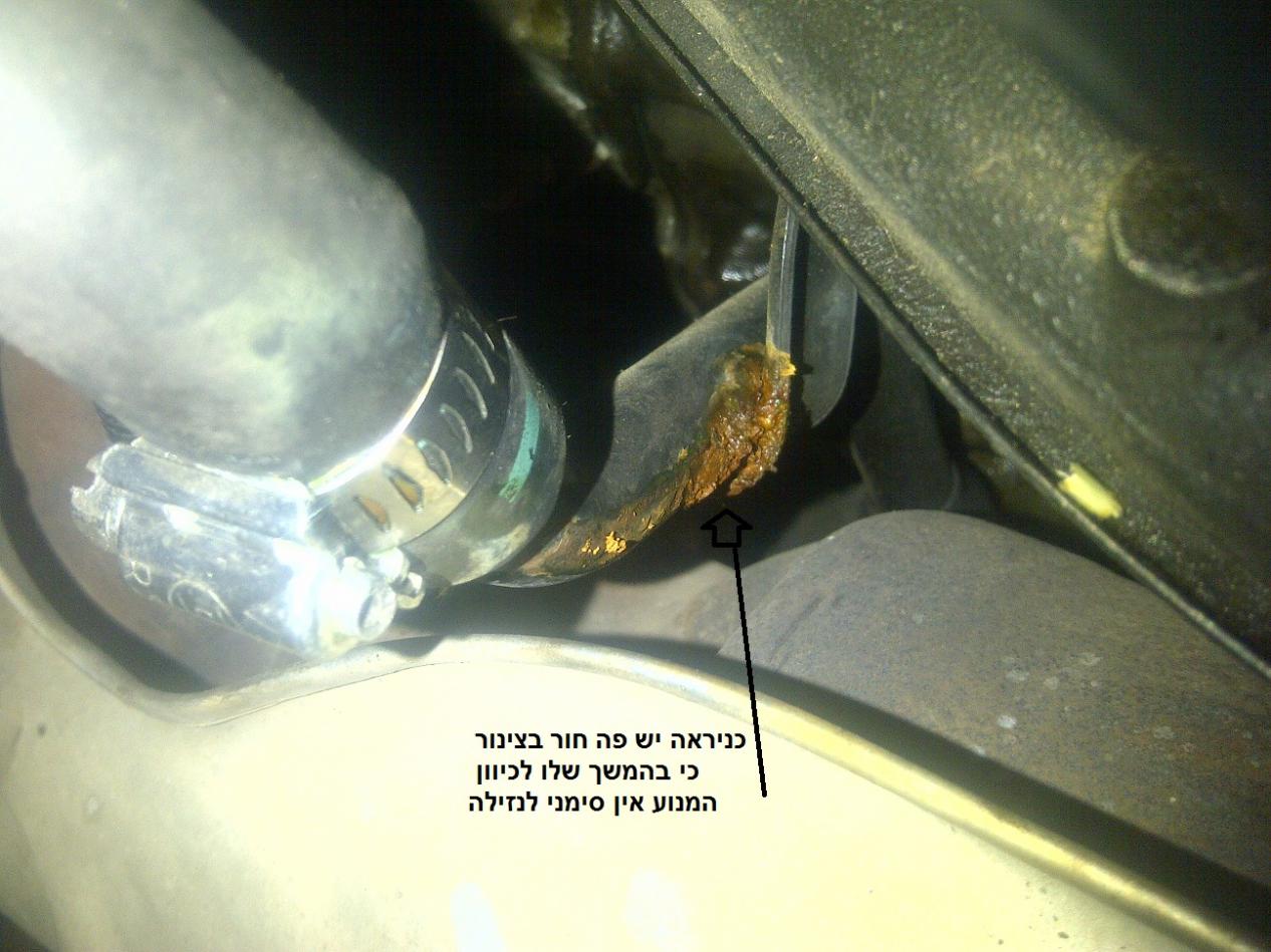 הצינור מתחבר לאיזור משאבת המים עלות צינור כזה כ-80 ש"ח ועבודה תחליף מיידית שהרי אם החור יגדל יהיה לך נזק גדול התחממות ועוד |