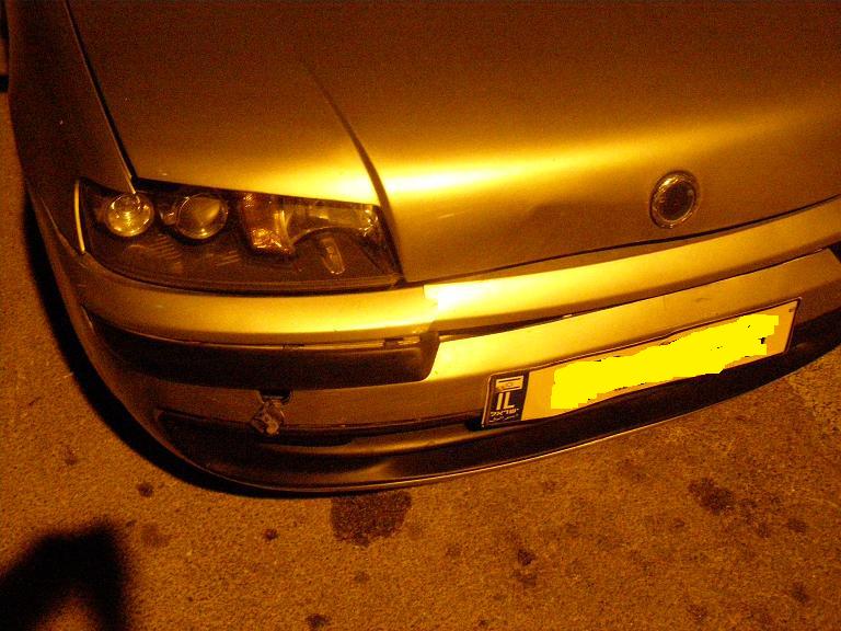 הרדיאטור זז מהמקום, הפגוש הקידמי בצד של הפגיעה חטף מכה לא קטנה בכלל, וזה נראה כאילו המנוע זז קדימה (באופן מוזר, לכיוון המנוגד ממה שחשבתי שיקרה, כאילו זז לכיוון קדמת הרכב ולא לכיוון תא הנוסעים). פנס ימין כמובן נשבר, ולאחר שראיתי את העשן שמאד הזכיר לי ראש מנוע (רק שאין לי מושג איך ראש מנוע אמור אם בכלל להיפגע מדבר כזה), פתחתי מהר את הפקק שמן, שהיה נקי, אך בפתיחה של מיכל המים, התגלה שמפלס המים עלה, והמים חומים, מזכירים מי ביוב (במקור היה פראפלו כחול).